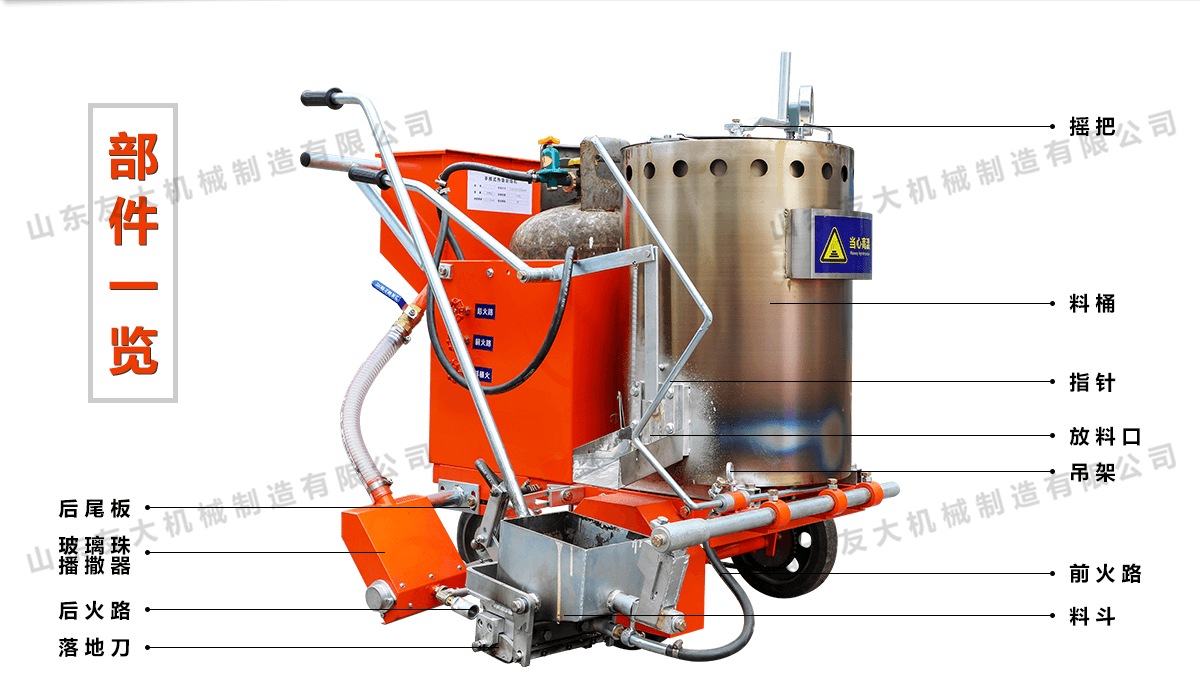 | 玻璃微珠撒播器 | 手动同步离合自动撒播,撒珠均匀,充分 |
