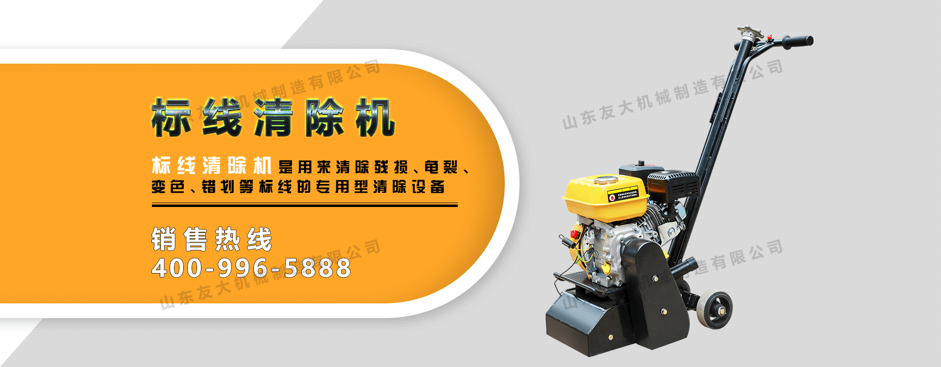标线清除机是用来清除残损、龟裂、变色、错划等标线的专用型清除设备。该机使用发动机带动打磨头高速旋转打磨头在旋转力的作用下与路面凸起标线磨擦将标线清除干净。