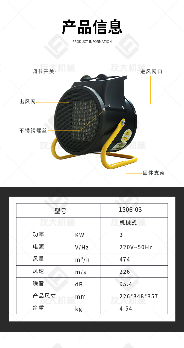 电暖风机体积小,移动方便,是非常不错的取暖设备。它可以用于养殖、厂房、车间、建筑工地、办公室、宿舍等局部取暖设施;对禽畜取暖,育雏取暖,花卉养殖,大棚蔬菜瓜果,商场,车间,展会人为取暖...