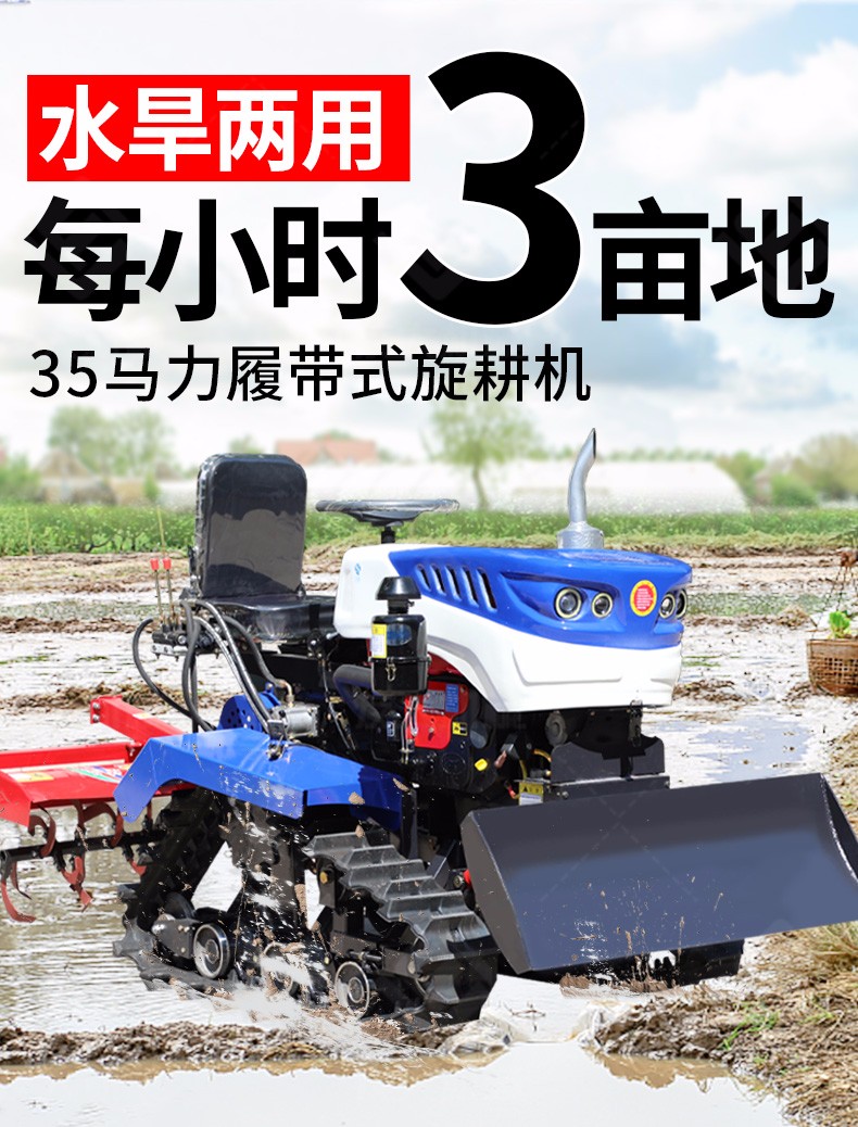35马力水旱两用履带式旋耕机每小时3亩地。