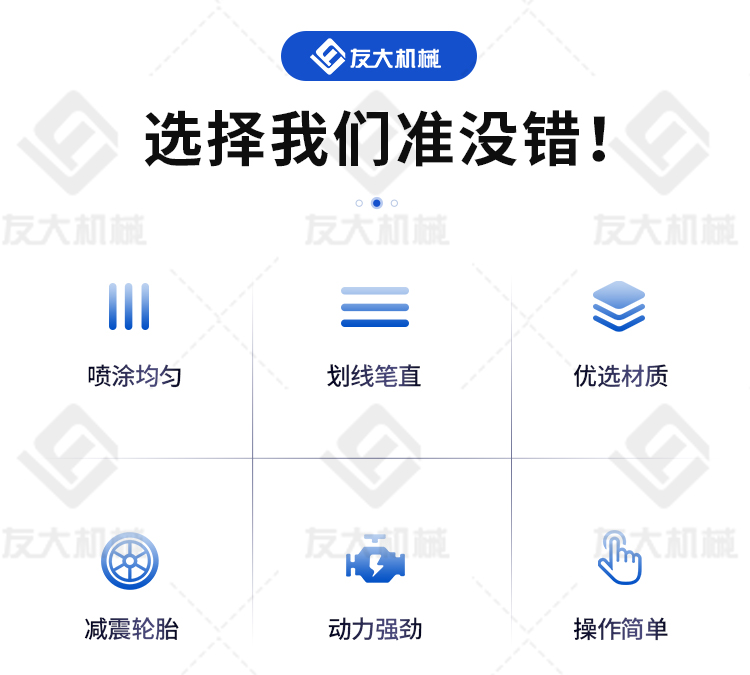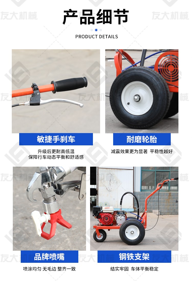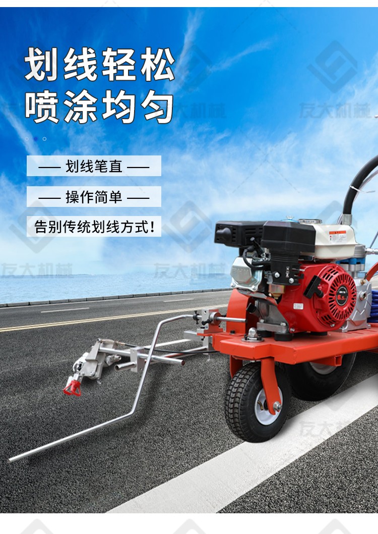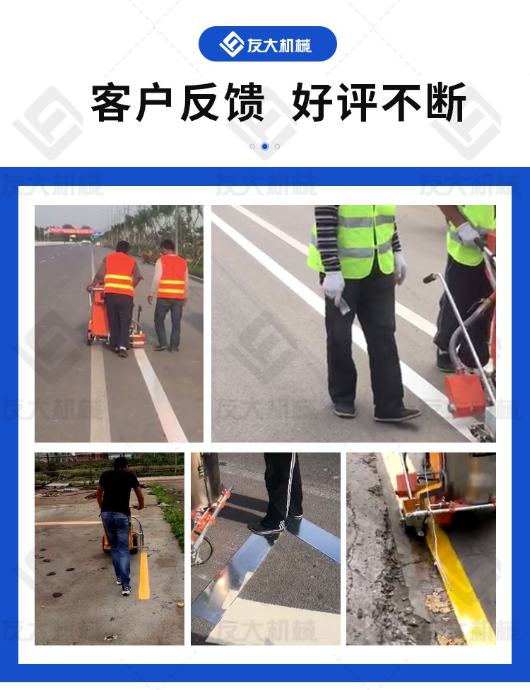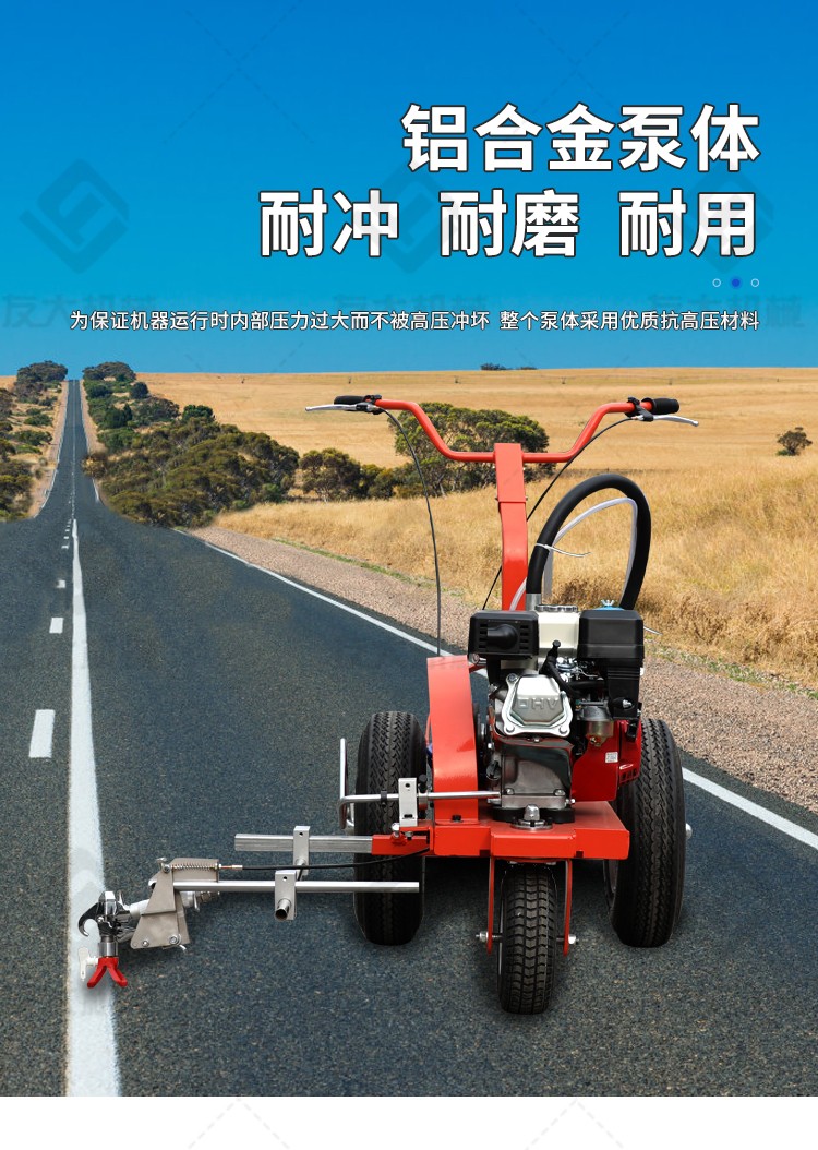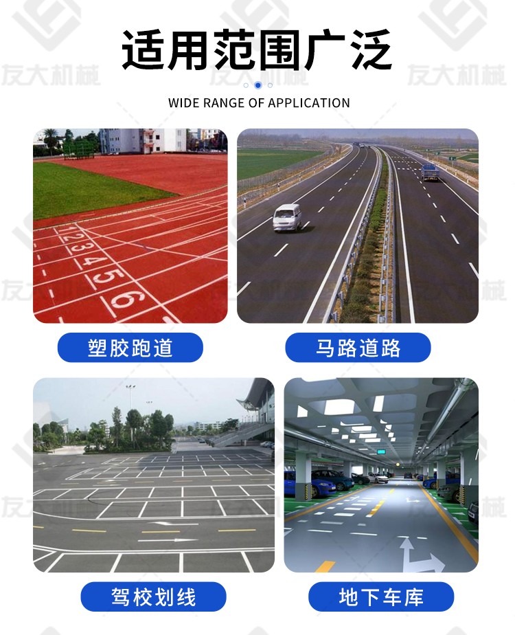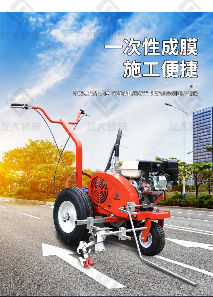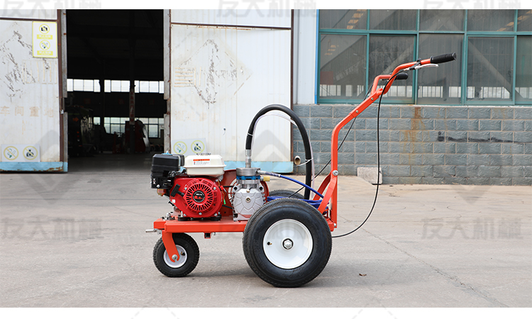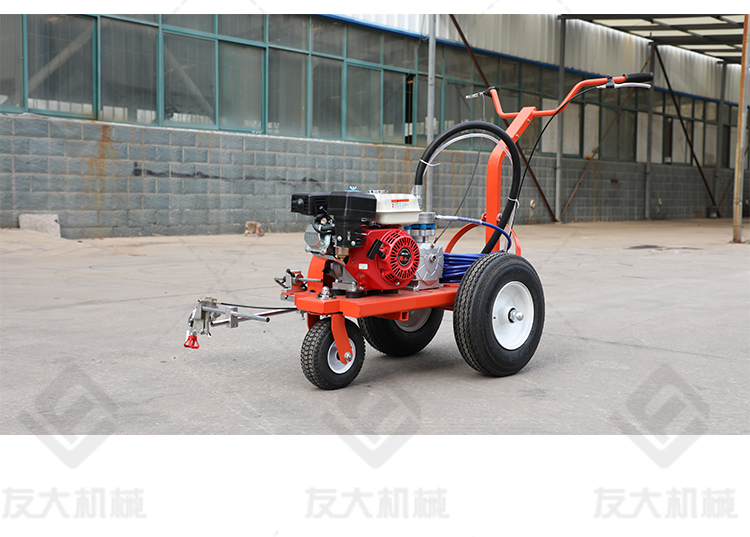 小型手推式道路划线机是一种在道路、停车场、广场和跑道等平整地面上划出不同约束、指引和警示等规则限制标志的路面施工机械。最常见的就是在马路上划斑马线,在路上划车库线、停车线等等应用于小型工程、短途施工,活动方便,灵活操作。