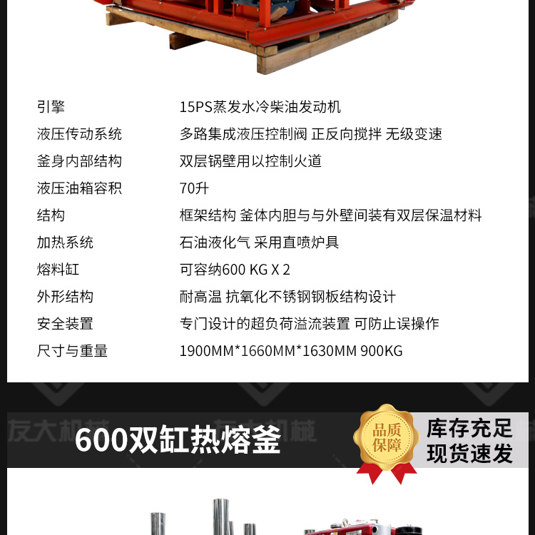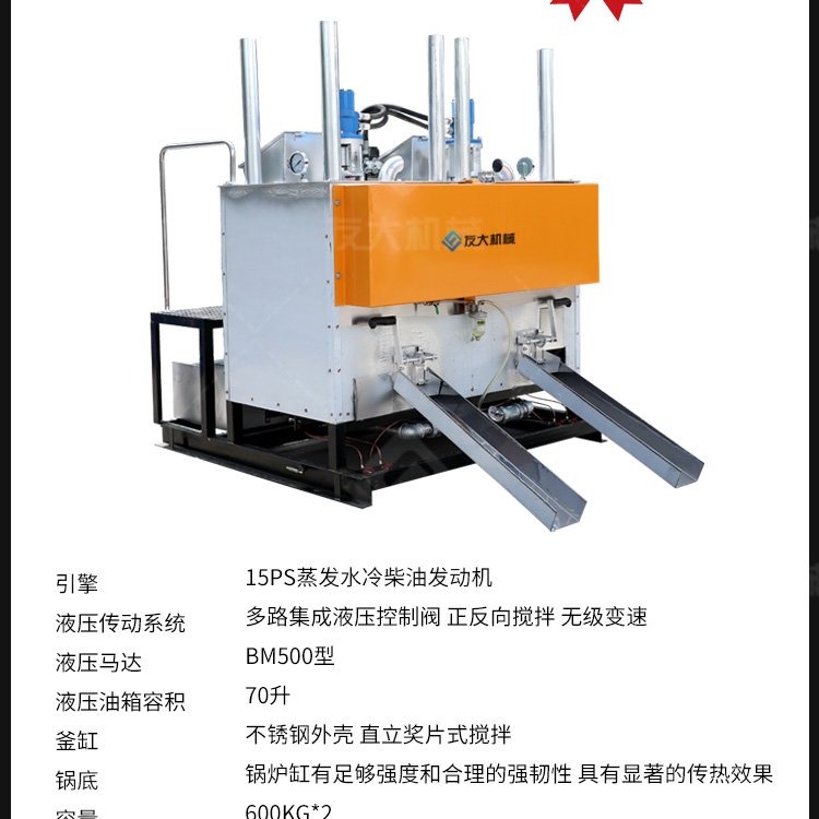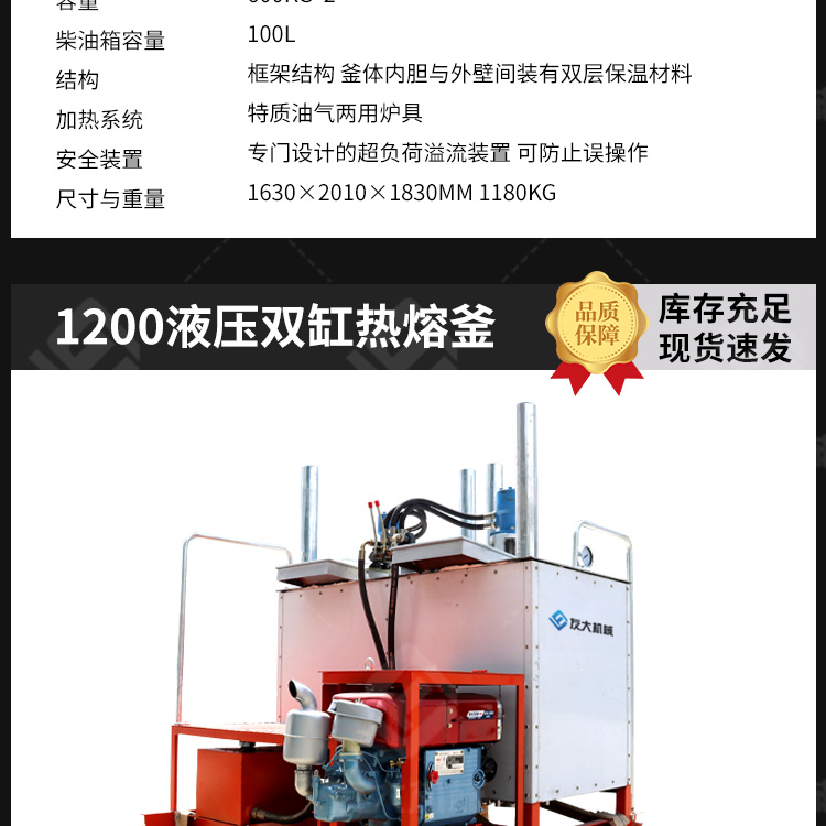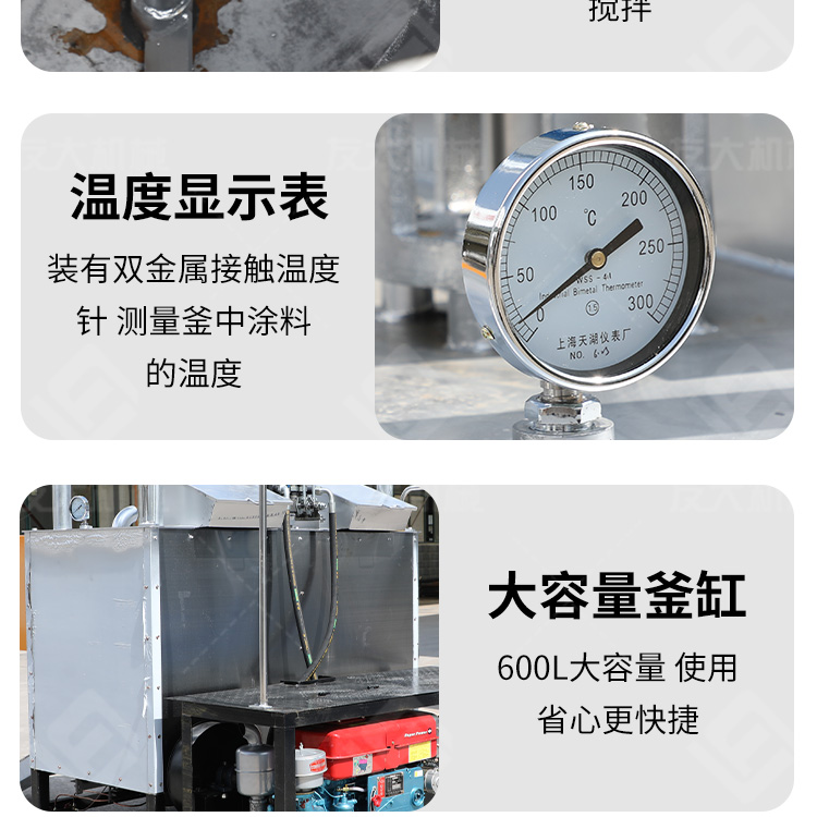 12四油汽两用液压双缸热熔釜,可使用液化气和柴油作为燃料