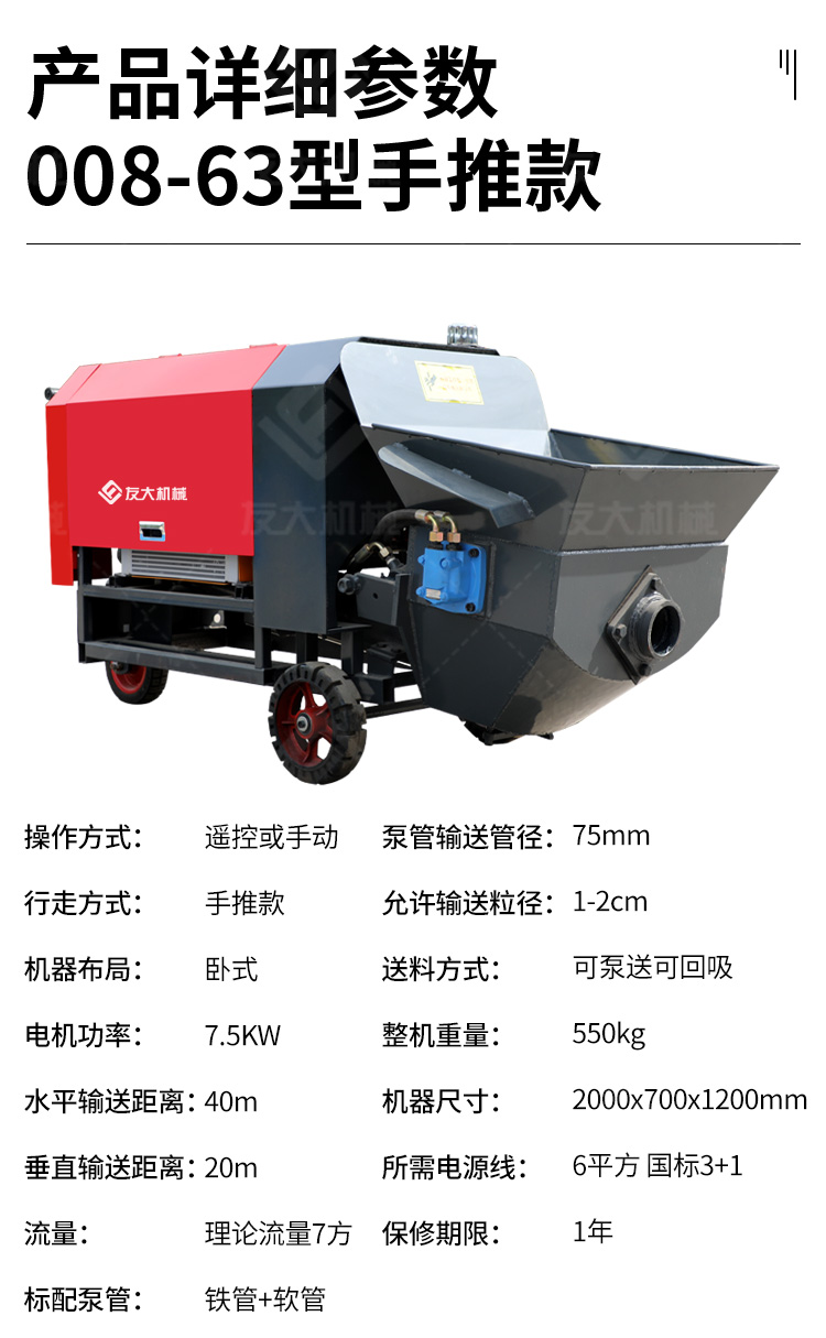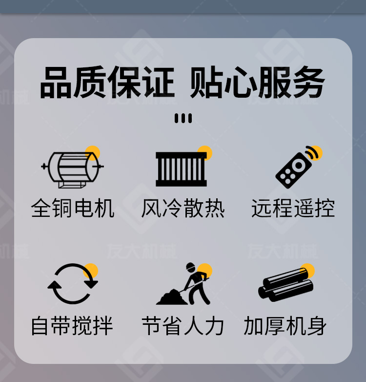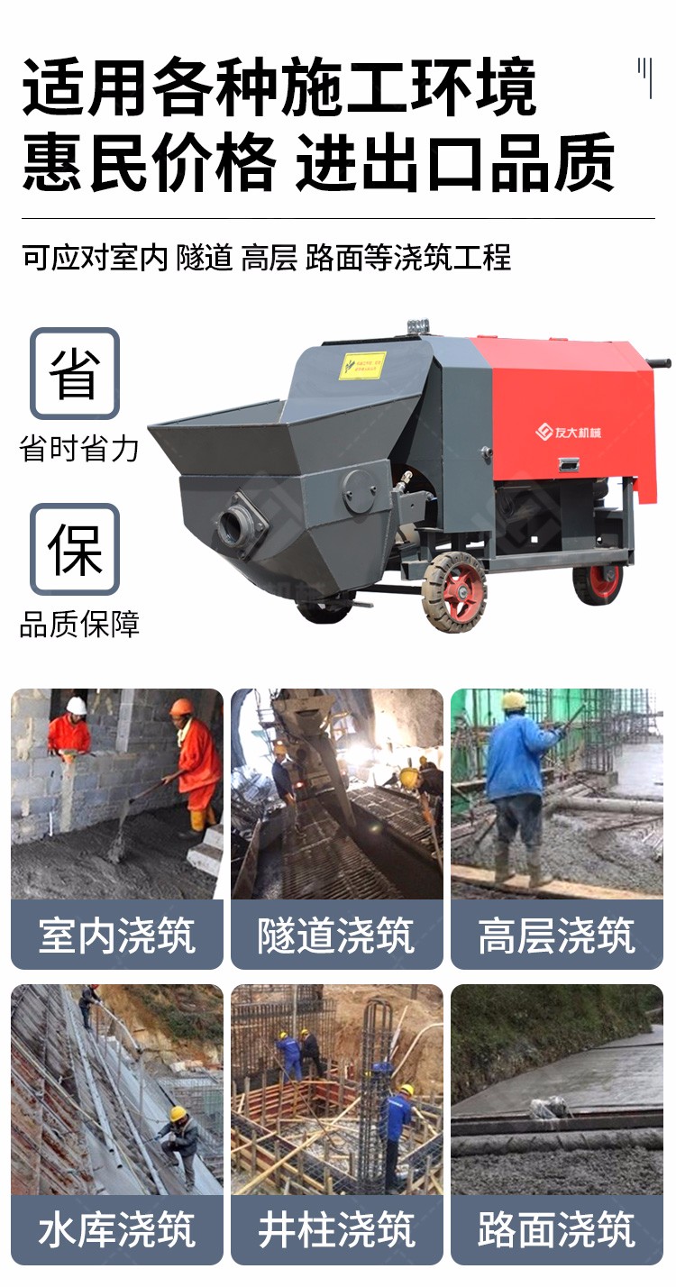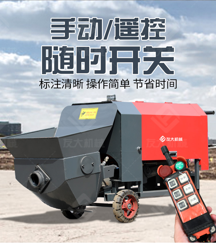 用独创的泵车尾轮驱动系统轻松解决移动时带来的各种困难;采用双排风冷散热系统散热效果更好,液压系统采用压力更高,性能更稳定的柱塞式自动变量主油泵,采用先进的三维立体压模一体式自动搅拌料斗可输送机制砂,高标号混凝土,有效缓解积料问题。