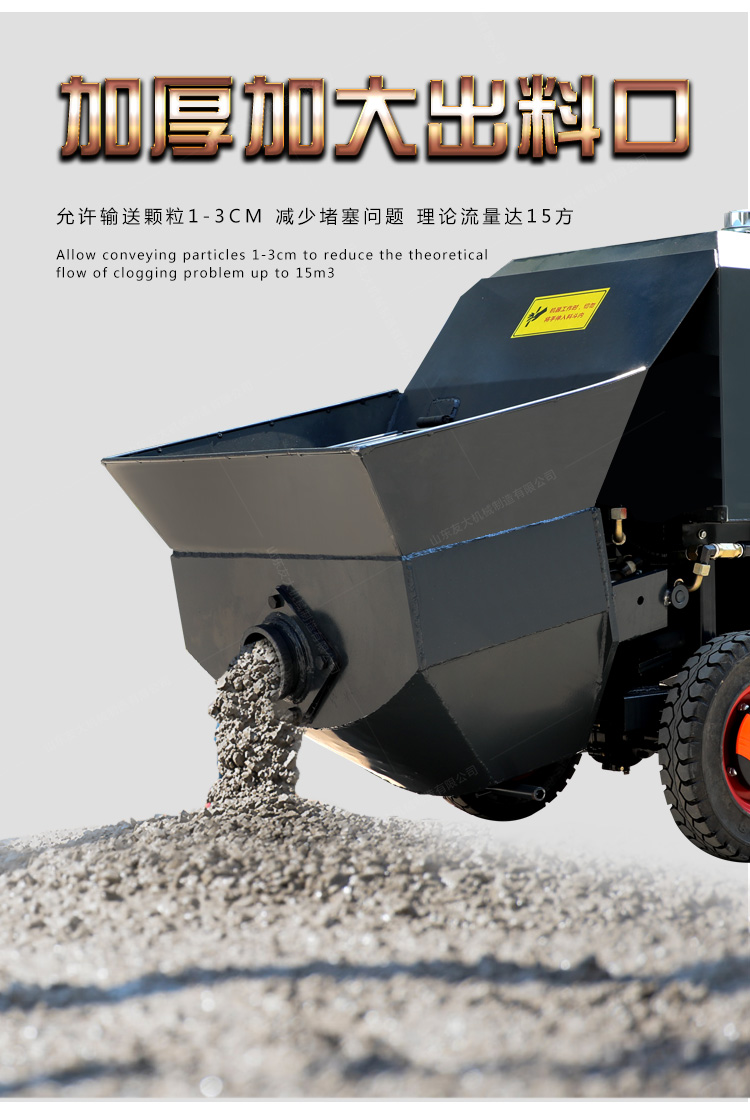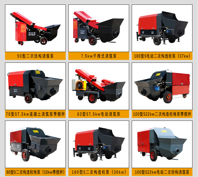 该设备具有电机功率大、性能稳定、施工效率高等优势,使用电动浇筑泵大大提高了施工效率,降低劳动强度,节约人工,被广泛应用。具体产品详情如下: