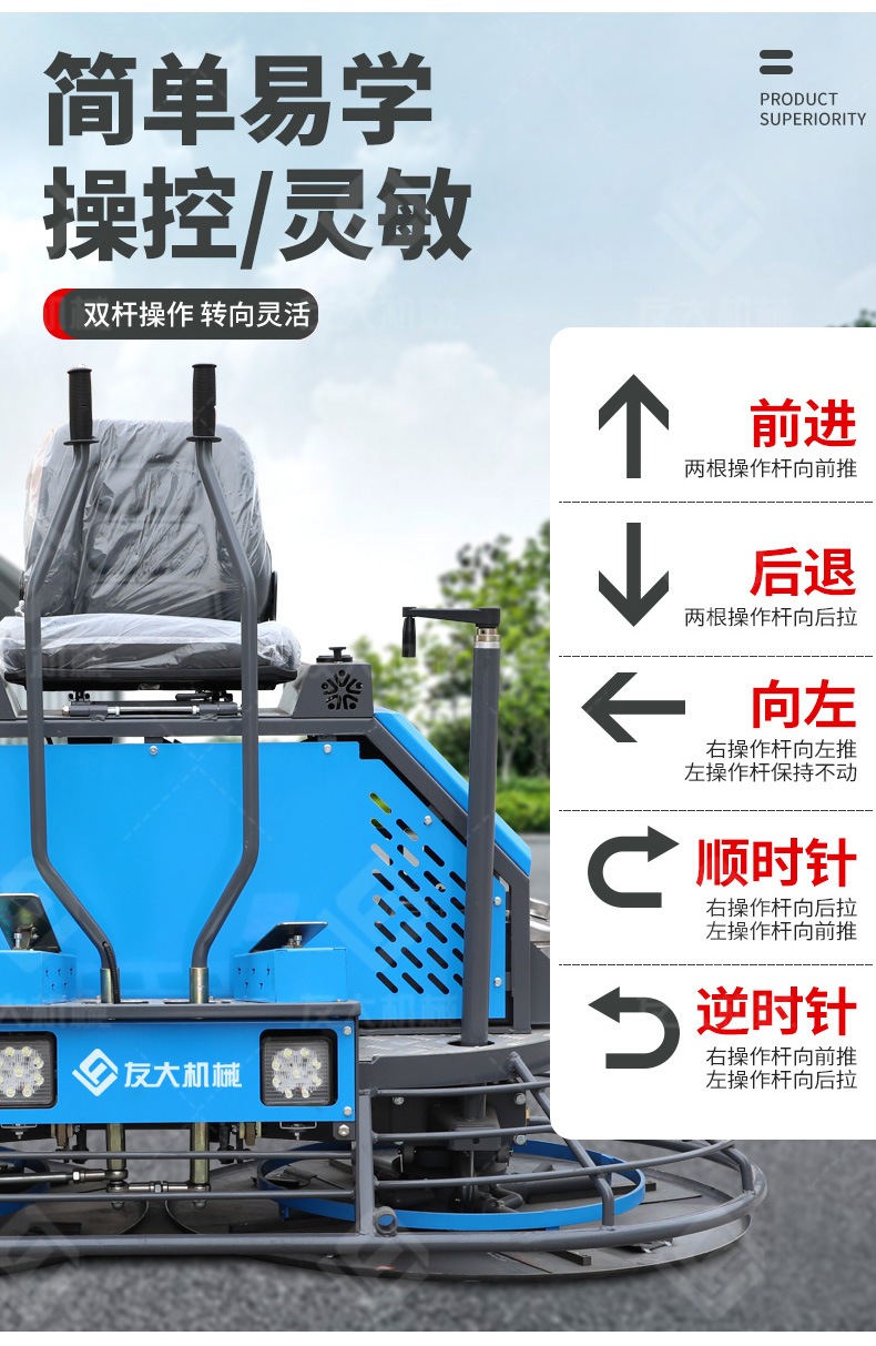座驾抹光机双盘驾驶操,作收光抹平,一台顶三台机器。