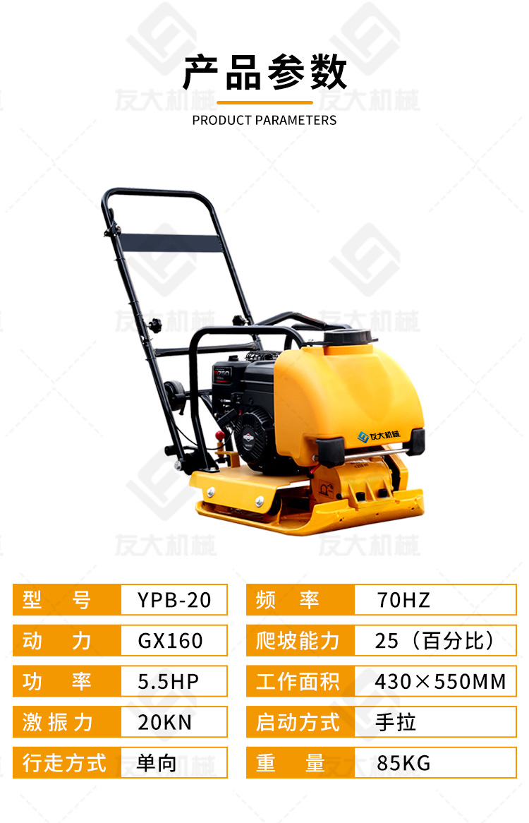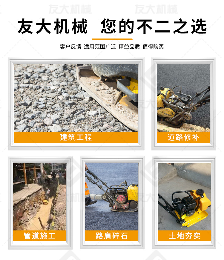 适用于路基边缘、桥涵、管道、沟槽底部等狭长地带的压实。