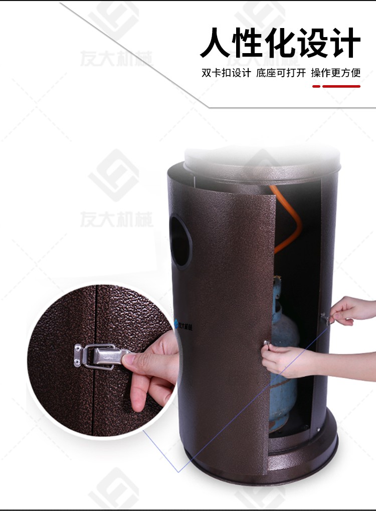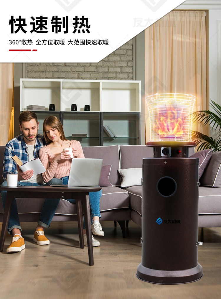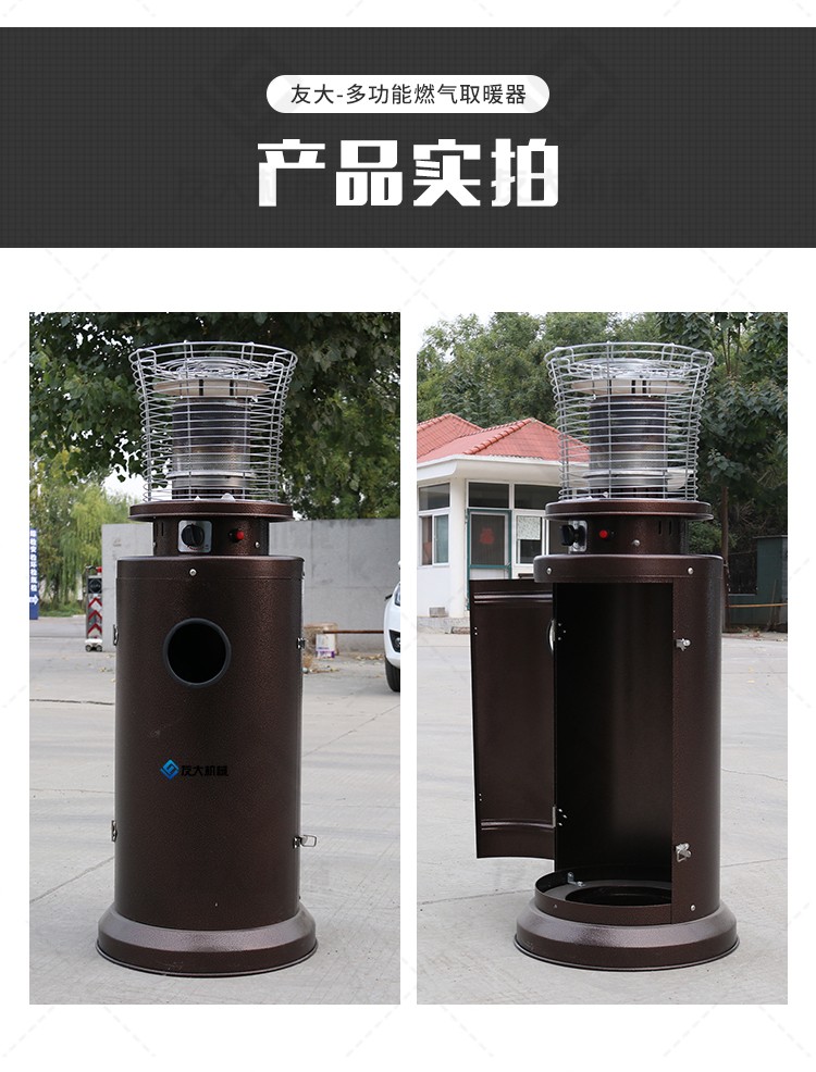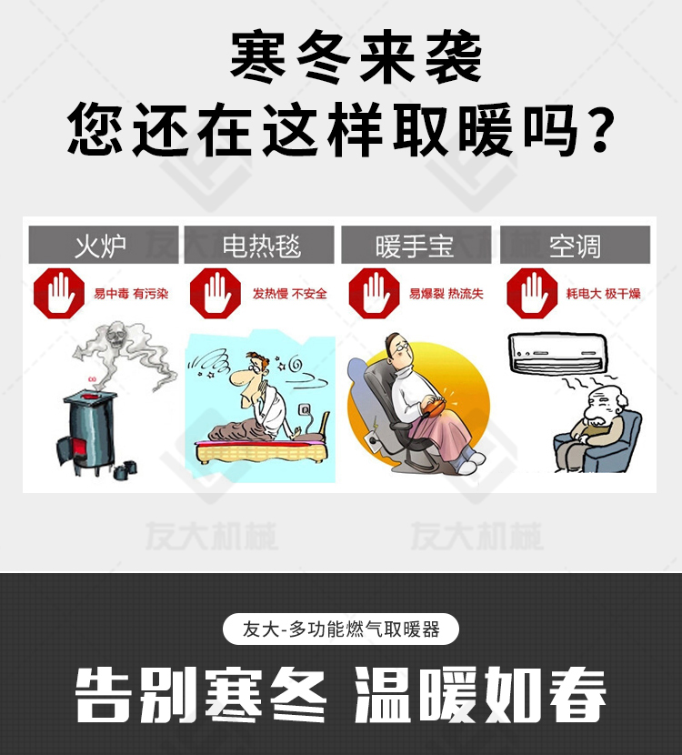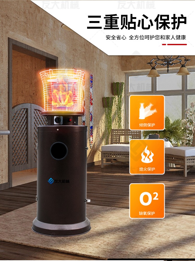 这是一款一机多用的燃气暖风机,可以取暖、烧水、烘干衣物,多功能,更经济。该机人性化设计,具有防烫设计,使用更安心。
