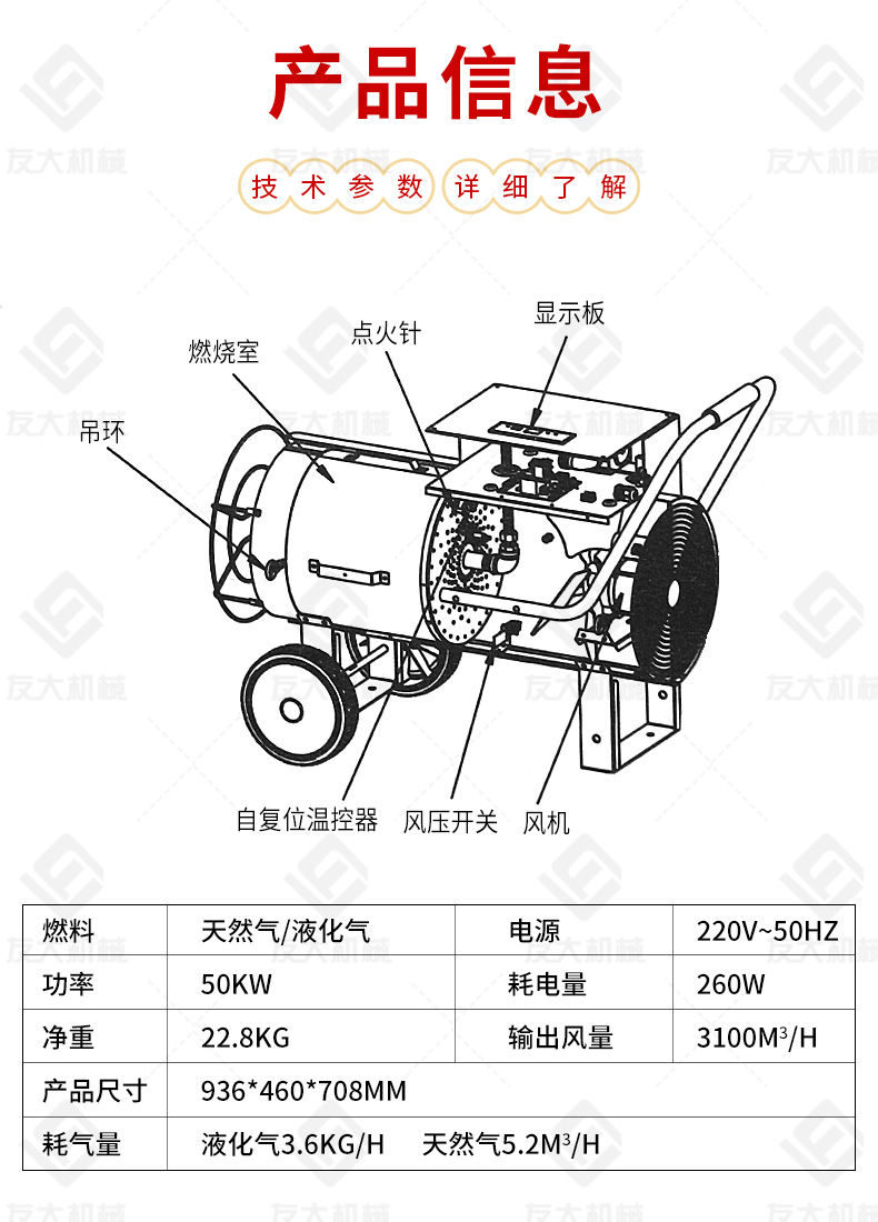 本产品是我公司广泛吸取国内外多种暖风机产品的成功经验,精心研制而成。便携式燃气暖风机可以根据适用场所不同进行划分,适用于大型钢结构工程、建筑工地、道路维修、停车场和公共设施。