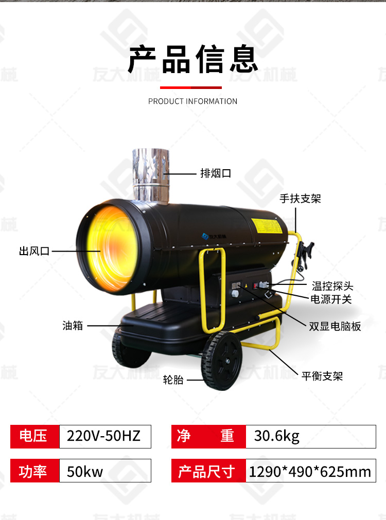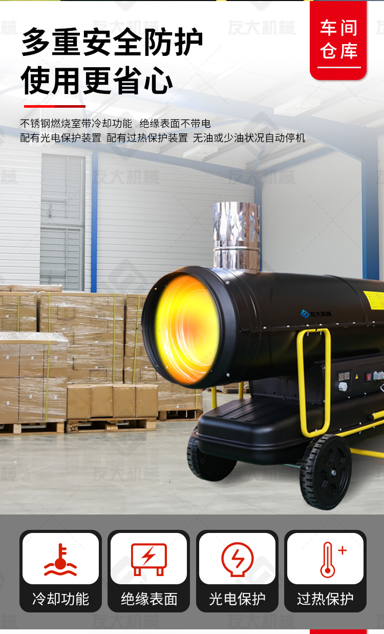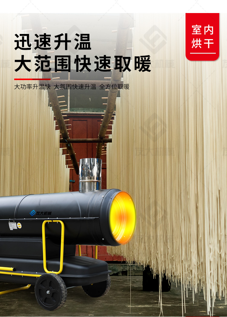 间燃暖风机的应用范围可以说是非常广泛的,主要可以应用于大棚育植、食品烘干、茶叶烘干、育雏养殖、 木材解冻、户外演出等需要供暖供热的场所,此外,配有光电保护装置、结构紧凑、使用方便、操作简单,因此,这款间燃暖风机深受客户的喜欢。