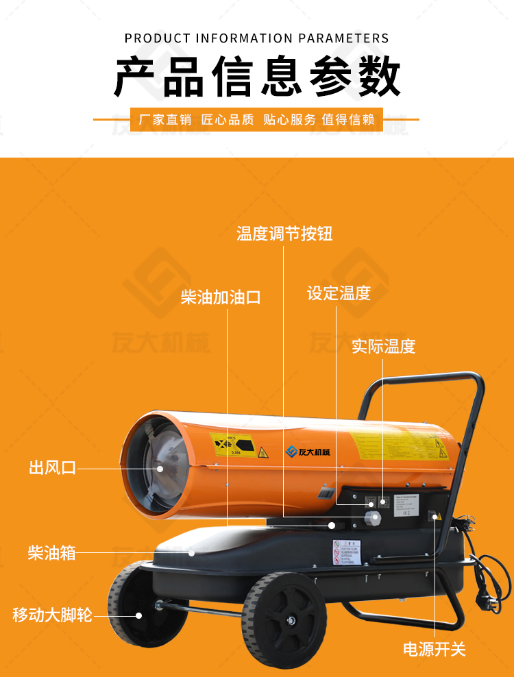 暖风机什么设备好,答案有很多,燃油暖风机肯定在其列,其升温快,并且恒温控制,在保证取暖效果的情况下节省燃油消耗,经济性好,无论是取暖还是烘干燃油暖风机都是不错的选择。
