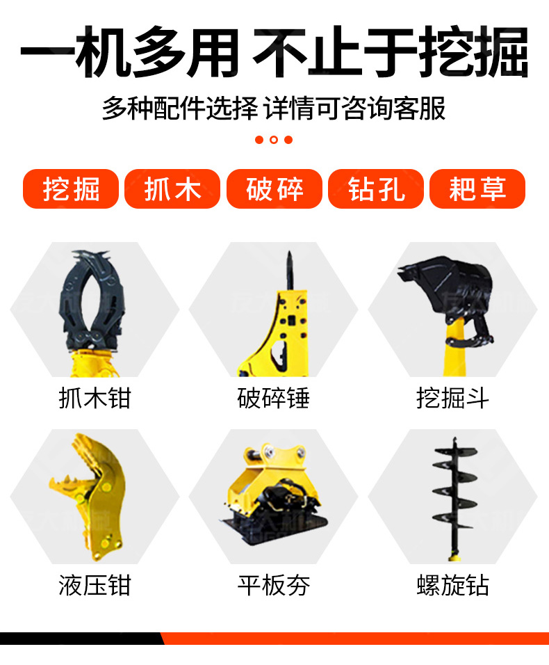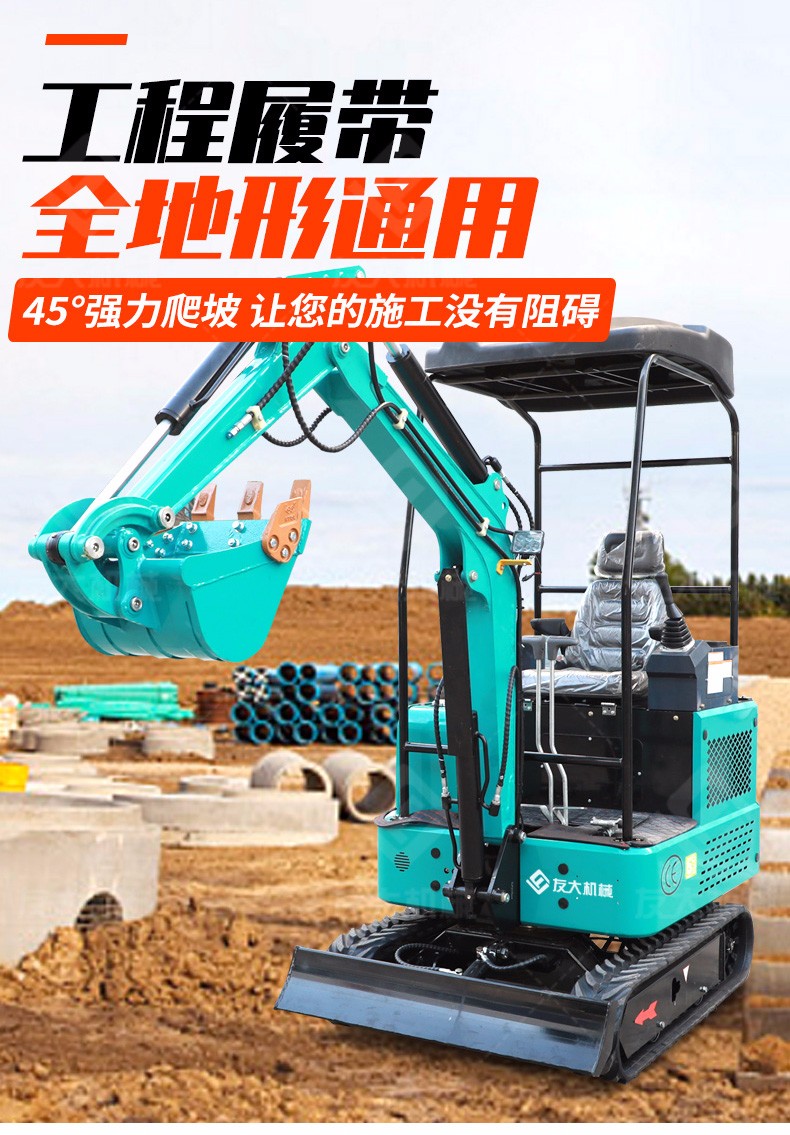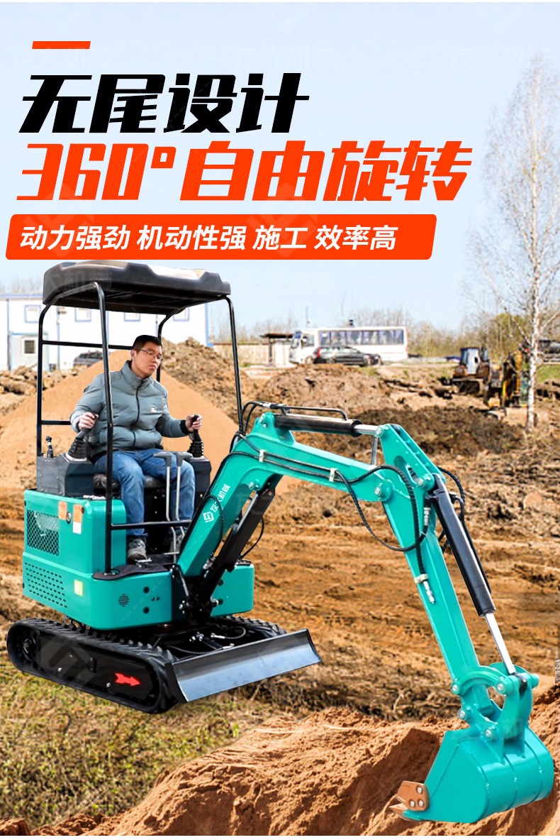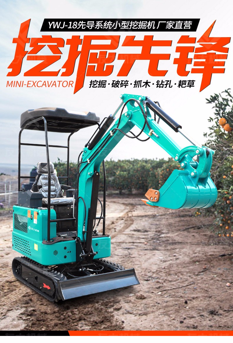 小型挖掘机主要适用于农业蔬菜大棚的土地疏松,市政部门的园林绿化、果园苗圃栽树挖坑、混凝土路面破碎,砂石料搅拌等空间狭小的施工作业等;