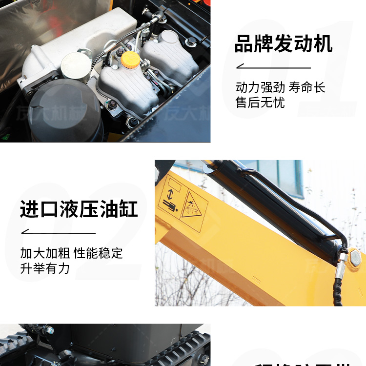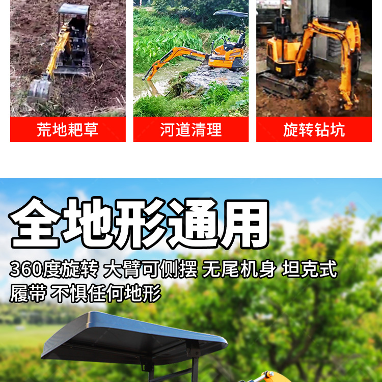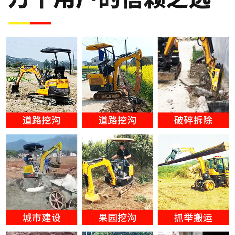小型挖掘机适用于农村建设果园市政园林等,同时也满足了城市各种作业要求,在城市狭窄的工作空间内...