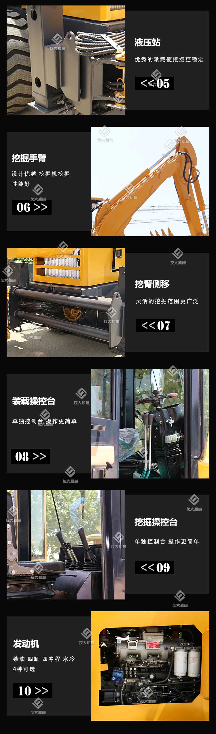 挖掘装载一体机俗称“两头忙”。因为它具有独特的构造,前端是装载装置,后端为挖掘装置。在工地内,您只需要转动一下座椅,即可完成从装载机到挖掘机操作手角色的转变。“两头忙”属于小型多功能工程机械的一种,一般在大工程完成后的小工程中使用。它可配多种工作装置及辅具,进行挖掘、铲装、路面破碎、平整场地、开挖沟渠、铺设管道等多种作业。