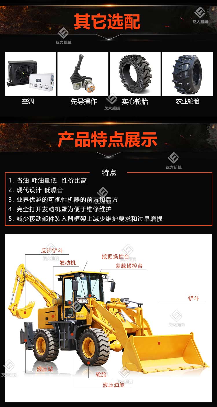挖掘装载一体机俗称“两头忙”。因为它具有独特的构造,前端是装载装置,后端为挖掘装置。在工地内,您只需要转动一下座椅,即可完成从装载机到挖掘机操作手角色的转变。“两头忙”属于小型多功能工程机械的一种,一般在大工程完成后的小工程中使用。它可配多种工作装置及辅具,进行挖掘、铲装、路面破碎、平整场地、开挖沟渠、铺设管道等多种作业。