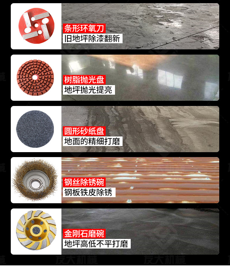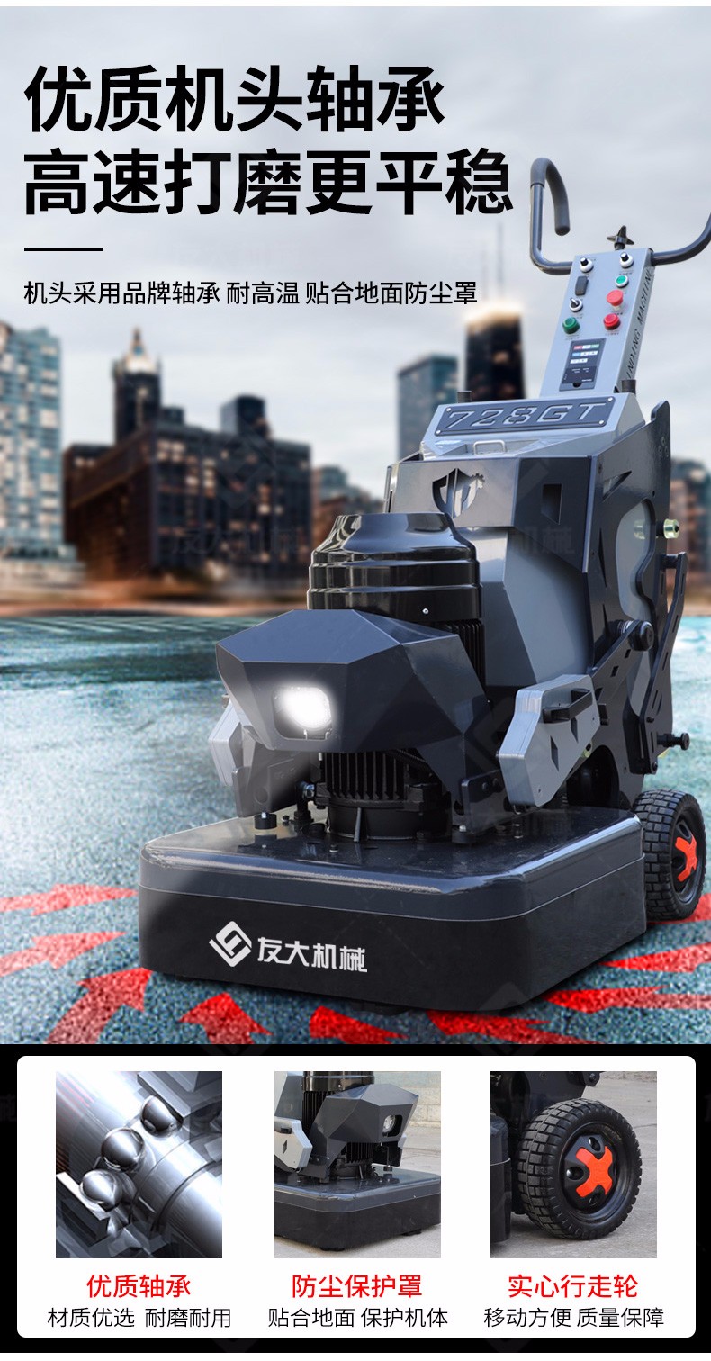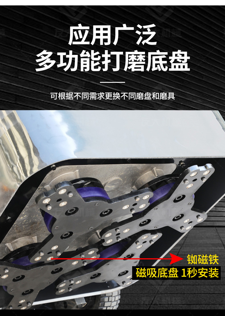 其广泛用于混凝土地面、石材地面的研磨、抛光,终达到旧地面翻新、新地面无尘的效果。具有轻便、灵活,工作效率高等特点。是做地坪工程处理的理想设备。