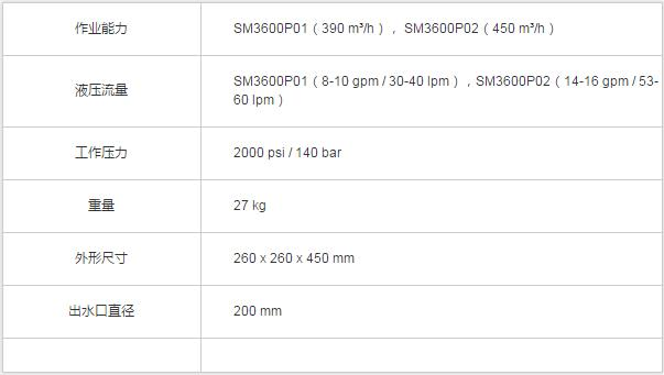 史丹利 SM3600 P01是一款大排量的8寸手提式液压水泵。由于其体积小、重量轻,易搬运等特点。可与18hp功率或以上的可移动液压动力站配合组成多用途移动泵站系统,广泛用于大流量供排水、应急抢险救灾排水等特殊场合。