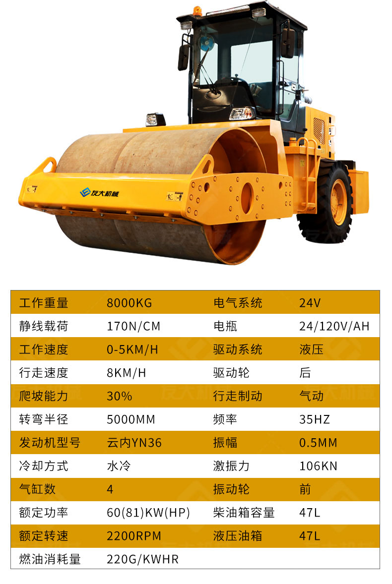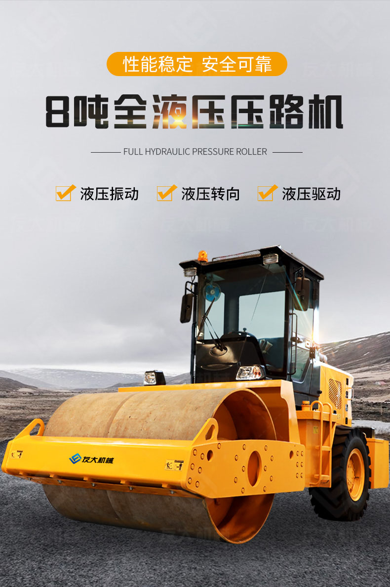 8吨座驾压路机体积大,压实强,为广大用户提供得力的压实助手。