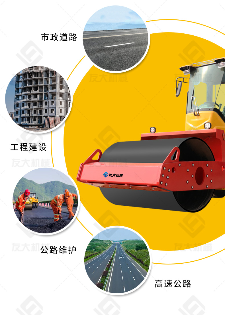 6T座驾压路机压实力大,操作灵活,具有很广的应用。其主要适用于各种非粘性土壤、沙土、砾石、砂石混合料、稳定土等建筑材料的压实工作。尤其在小区道路、乡间公路、地下停车场、操场以及各种沟槽回填土方等小型工程压实作业中较为经济实用。