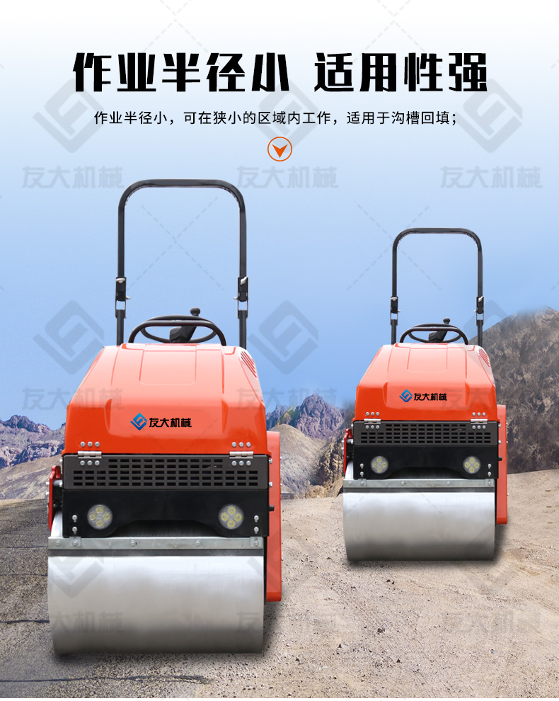 1t小型座驾压路机体积小,行走灵活,可以用于沥青压实、回填作业、沟槽压实作业、体育场地等压实作业,应用范围广,性价比高。经典红色款非常受欢迎。