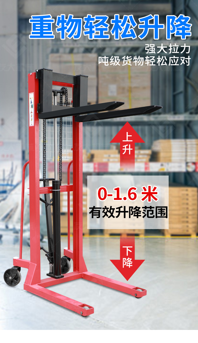 手推液压堆高车重物轻松升降,强大拉力,吨级货物轻松应对